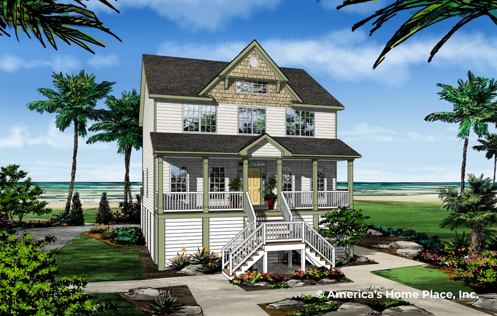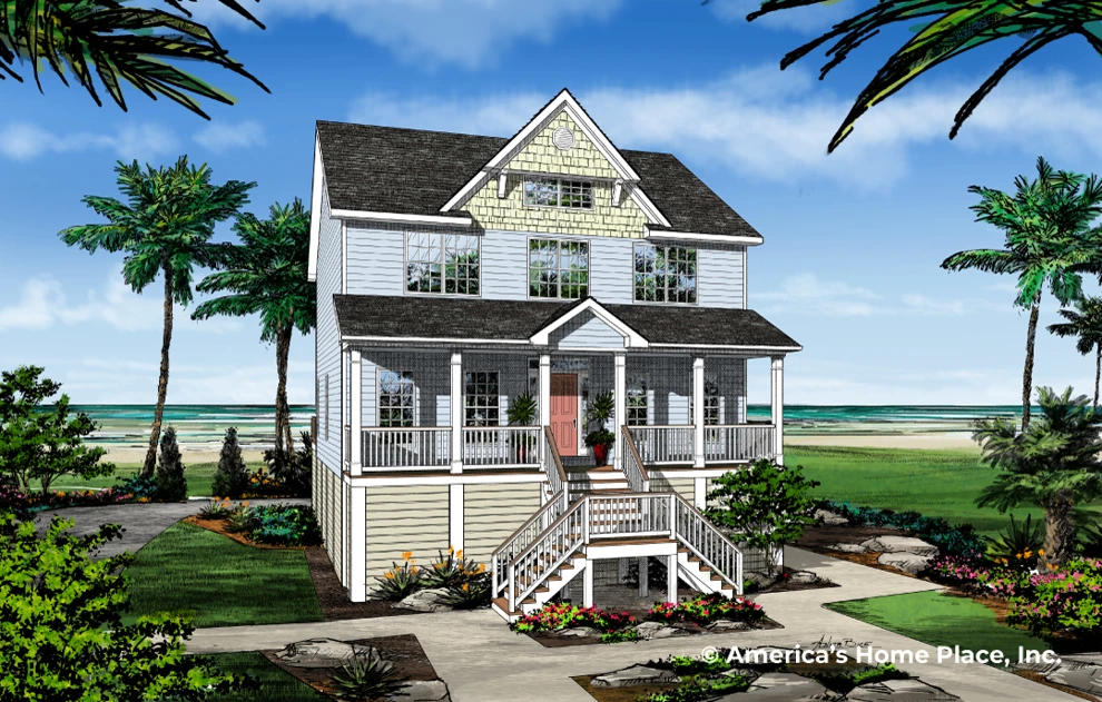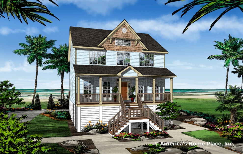 This two-story coastal dream is designed with character, charm, and congeniality in mind. As you walk up the steps, you’re greeted by a welcoming front porch where gentle coastal breezes and the soft sound of the sea create an atmosphere of timeless relaxation—perfect for morning coffee or evening sunsets. Inside, there’s plenty of space for gathering and unwinding on the main floor, with a living room and family room on one side, and the kitchen, dining room, and breakfast room on the other. Upstairs, the master suite features a double-sink bathroom and two walk-in closets, accompanied by two additional bedrooms. Together, these thoughtful details make the Amelia A the perfect coastal retreat for you and your family.