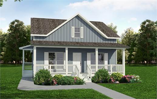 Looking for the perfect cozy home? This two-bedroom farmhouse combines efficiency with elegance to meet your needs. Step onto the welcoming front porch and into the open living space you’ve been dreaming of, complete with a dining room and kitchen. Each bedroom features a walk-in closet with plenty of space for all your wardrobe essentials. The Cherokee Farmhouse makes peaceful living easy and enjoyable!