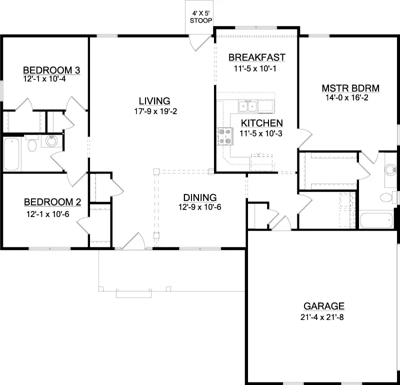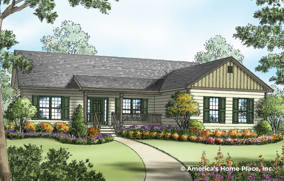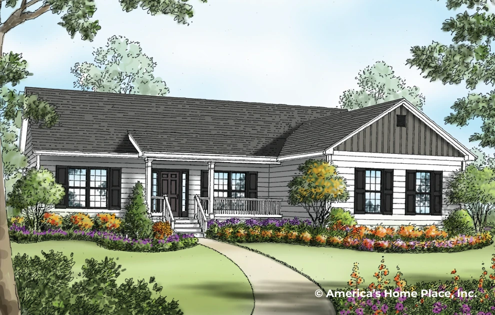 This delightful ranch style home provides 3 bedrooms, 2 baths and standard garage. The master bedroom is split from the other bedrooms by the spacious ‘living center’ of the house. The formal dining room with columns and separate breakfast area will provide multiple places to dine together with friends and family. This plan would be a great addition to any location.