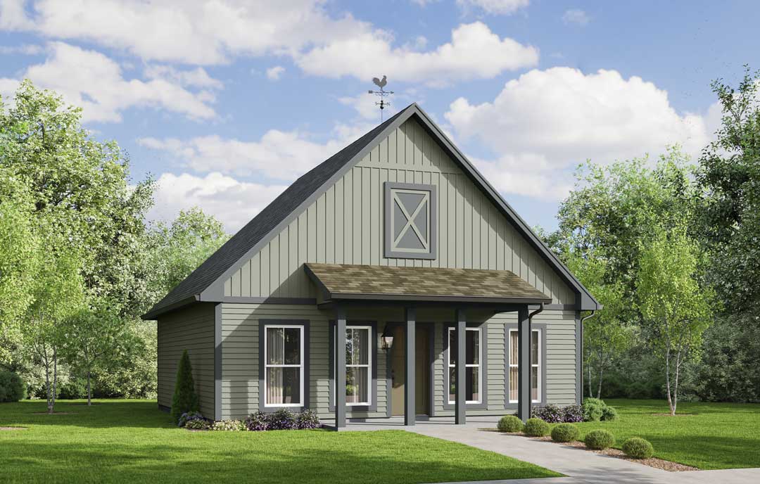 The front porch of the Prairie Barndominium welcomes you home to a very spacious two bedroom plan. The open Living, Dining and Kitchen all have an open feel with plenty of space to relax. This attractive, barndominium style home is sure to offer the curb appeal that you're looking for. The single and double optional garages on either side of the home will finish off this barn style look and offer you the options that work best for you.