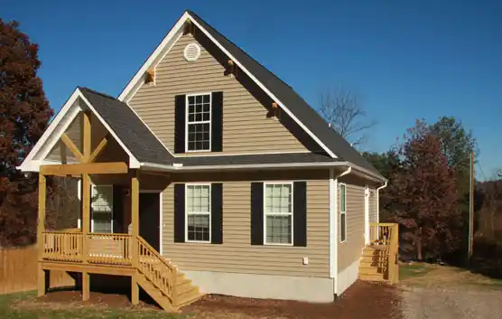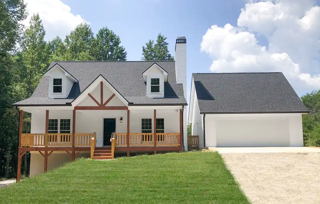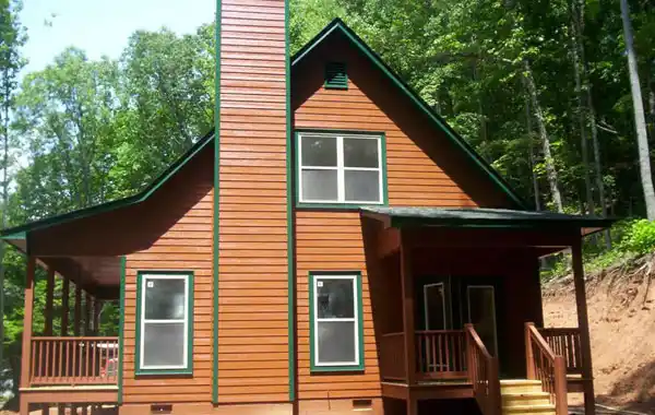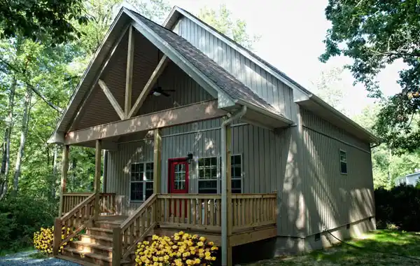 Cozy cabin feel for the country or the mountains with a covered front deck to enjoy the scenery. You will love this 3 bedroom, 2.5 bath plan. You will find the master on the main floor and 2 bedrooms upstairs. The optional fireplace is sure to warm up the spacious great room.