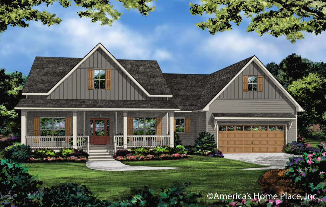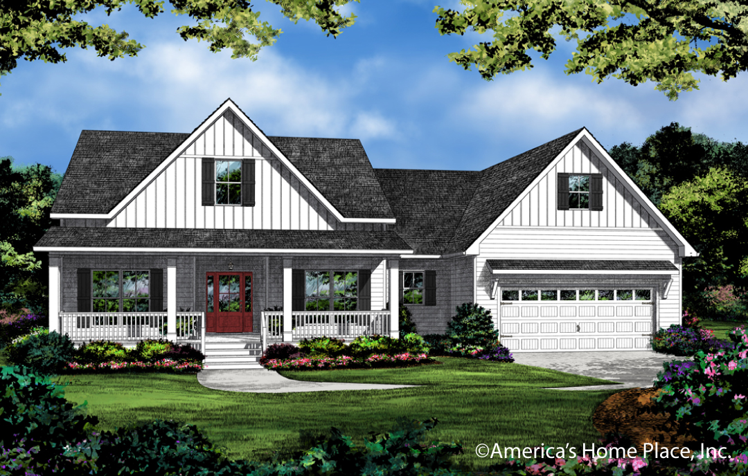 This gorgeous Farmhouse style ranch, three bedroom plan will fit perfectly in any location. You will be welcomed home by the stunning board & batten exterior as well as the charming covered front porch complete with columns. The dining area and spacious kitchen area will provide multiple places to dine together and entertain friends and family. The sizable great room provides additional space and brings warmth and comfort to the entire room with the optional fireplace. Enjoy some quiet time in the study while still feeling connected to the rest of the home. All bedrooms are complete with walk-in closets. And the master bathroom provides ample counter space with his and her sinks, and a separate garden tub and shower. The utility room provides entry to the double garage that will be convenient for rainy days and coming home late.