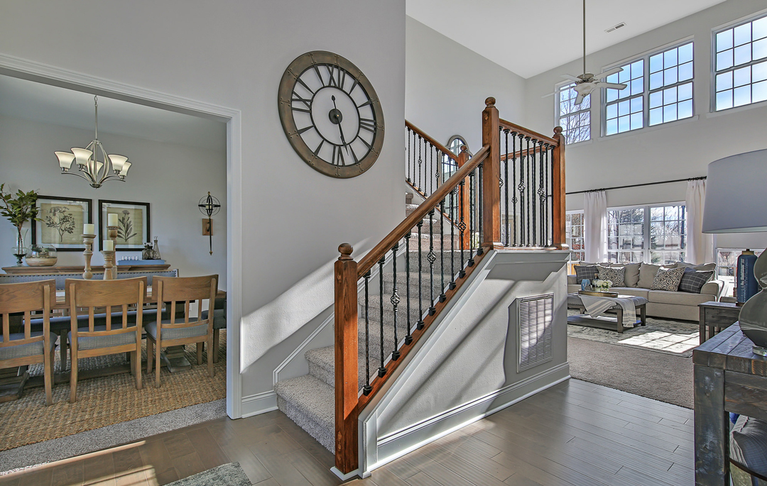 The foyer and great room are open to the second floor, with stairs leading to a balcony that overlooks this spacious area. The 2-sided fireplace is sure to keep the great room and keeping room cozy. This plan offers plenty of room for your family, a large formal dining room, separate breakfast area, master on main and three bedrooms on second floor.