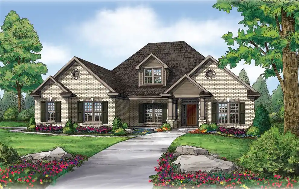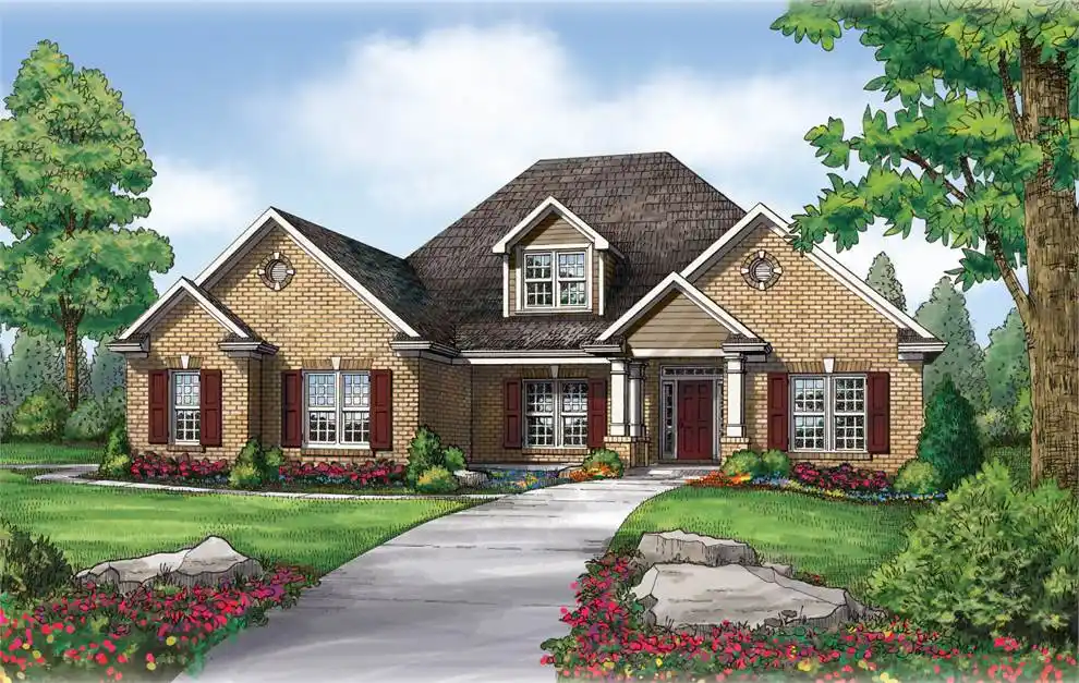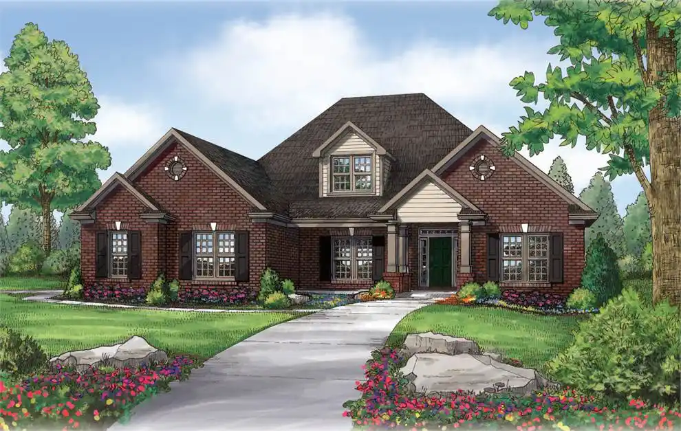 This brick front home will provide many of the features your family desires. A charming porch leads to a floor plan with 3 bedrooms, 2 baths and garage. There is a generous study that can be used as a fourth bedroom or a bonus room. The master bedroom is complete with a walk-in closet, garden tub and separate shower. All bedrooms are complete with walk-in closets.