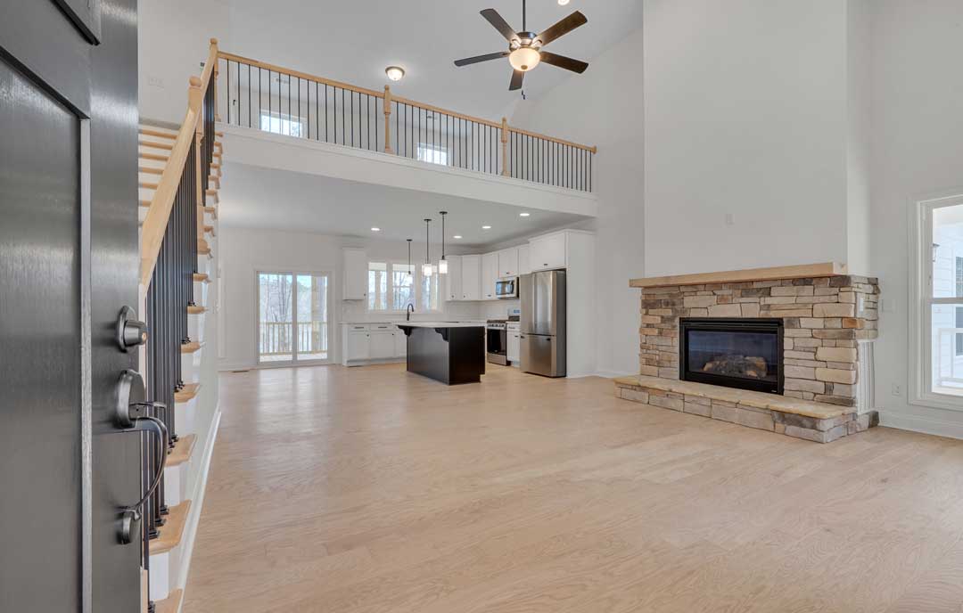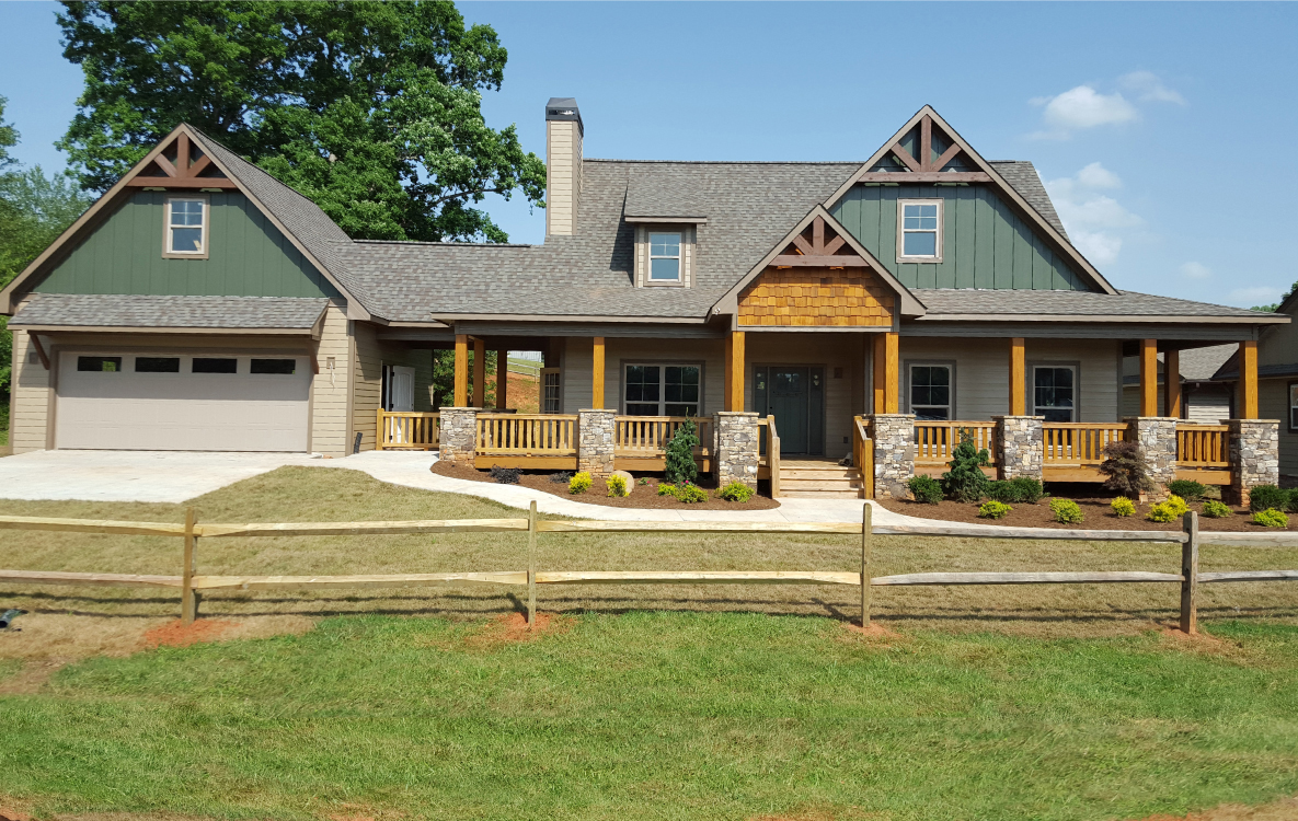 Stone and shakes add a rustic touch to this beautiful mountain style home. Sit back and enjoy the view on the wrap around porch. The spacious living room has vaulted ceilings to the second floor. Private master on main floor with walk in closet and double vanity. The second floor has 2 bedrooms with a loft space that can be used as a 3rd bedroom. The great room has an option for a cozy fireplace that would be an ideal addition to this mountain home. This elevation also features a detached garage.