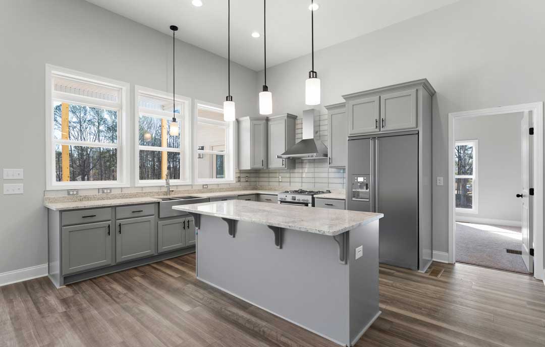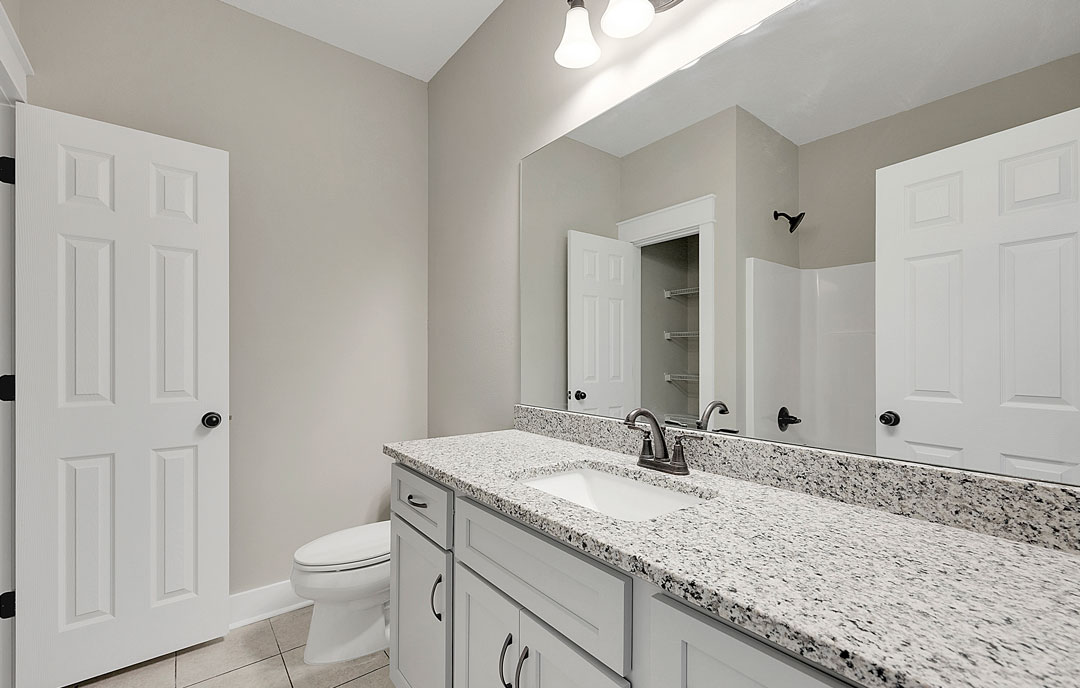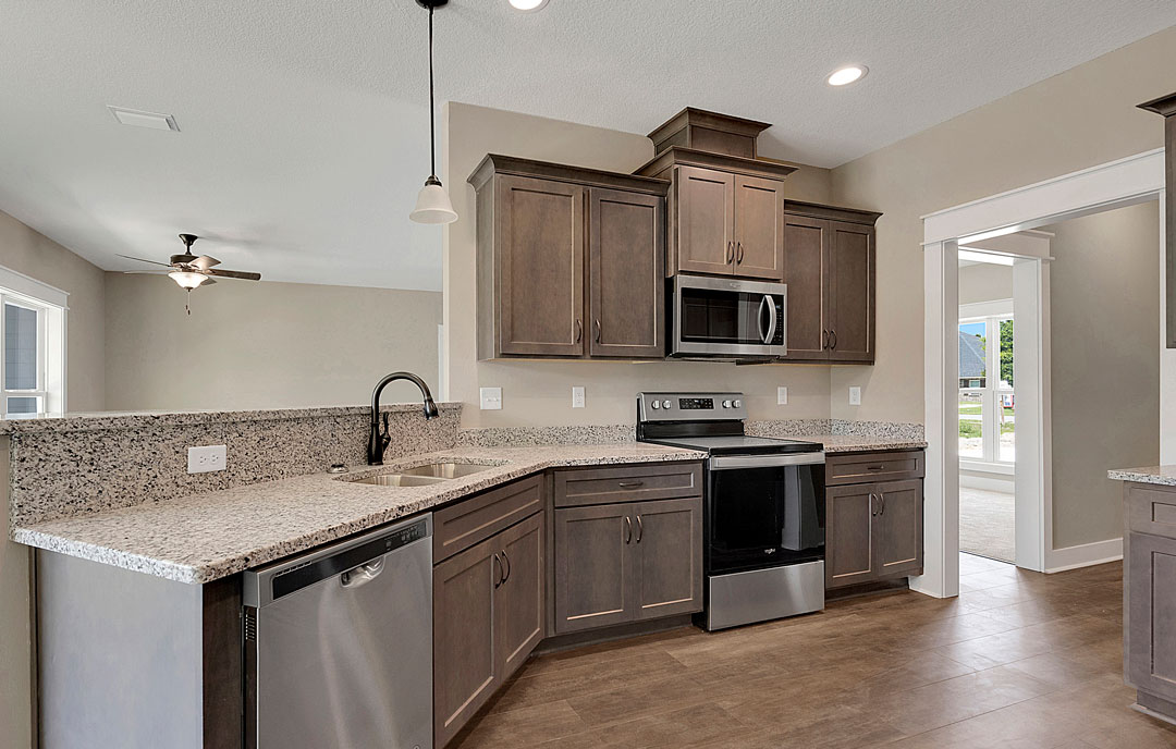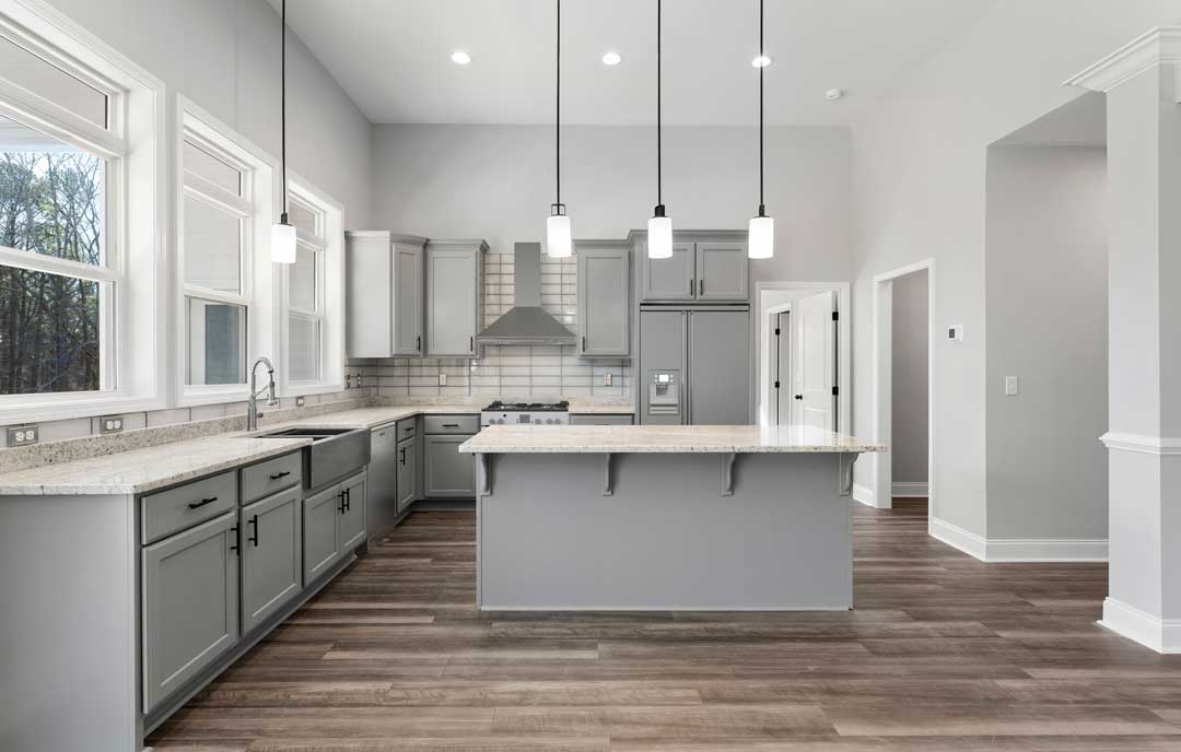 This stylish 3 bedroom, 2 bath ranch is perfect for any location. The large kitchen has an angled breakfast bar to provide additional seating to the separate breakfast area. The master is complete with his and her walk-in closets, dual vanities, a garden tub and separate shower. On the opposite side of the home you will find the additional bedrooms that include walk-in closets. These rooms share a hall bathroom that is also accessible to guests. This plan also comes with an optional bonus room.