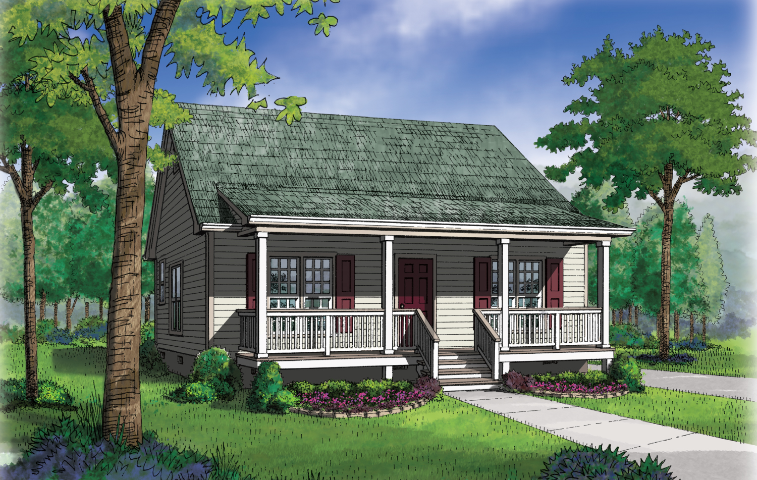 Good things do come in small packages! This layout packs it all in. Whether it’s your first home, a vacation villa, or you’re downsizing, the simple life is the good life! A large relaxing Covered Porch invites you into a wonderful open Living, Dining and Kitchen area. The large Utility Room is completely functional with a wall of shelves for extra storage and a door which provides access to the outside. Each Bedroom has a walk-in closet. It’s a simple dream and a sweet one. Call it home and it comes true!