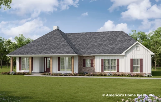 Any information shown is subject to change without notice. Images may show options and upgrades not included in the base home price and may not reflect actual finished home or landscaping. Specifications and prices vary by location. Home designs represented on this page are property of America's Home Place and are intended for demonstration purposes only. Any unauthorized duplication, copying, or reproduction, or any other use, is strictly prohibited. © 2025 America's Home Place, Inc.