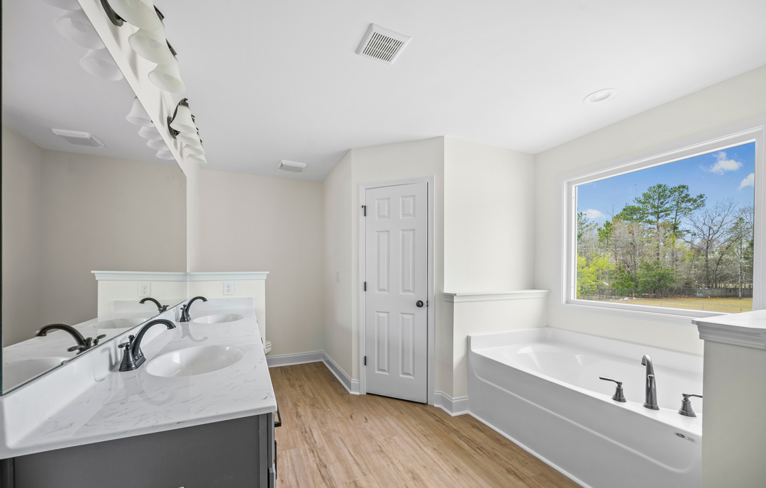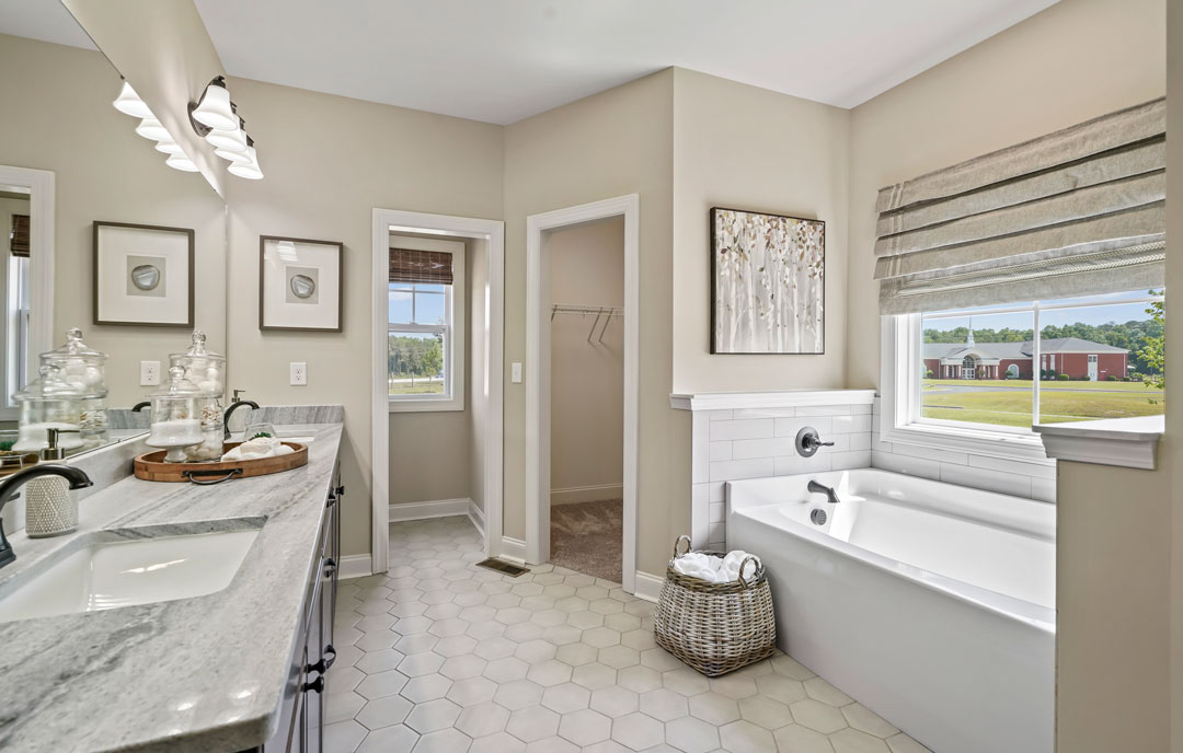 This extraordinary modern farmhouse style home offers 4 bedrooms, 3.5 baths and bonus gathering room. The flex room can accommodate your need for extra space. The dining area and eat-in island will provide multiple places to dine together with friends and family. The owners suite is on the main floor and features a spacious bath complete with matching walk-in closets, dual vanity, a garden tub, and separate shower. There are 3 bedrooms upstairs with walk-in closets and a bonus gathering room. The Hill V Modern Farmhouse is sure to fulfill the needs of your family.