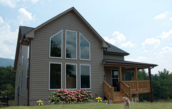 This cozy 2 bedroom cabin makes a perfect home for the mountains. Sit back and enjoy the scenery through the glass viewing wall or step out on the front porch for a closer view.