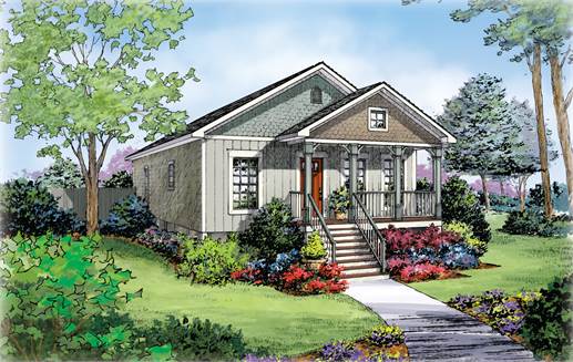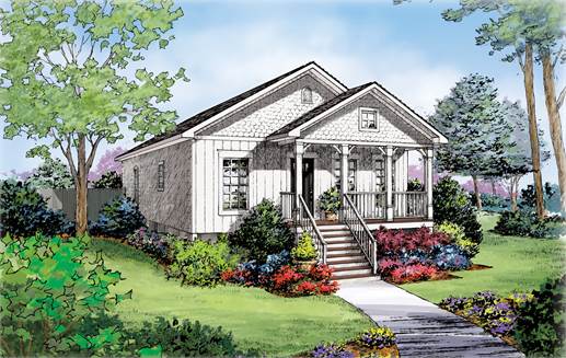 This ranch is a perfect cozy design with a covered porch to the scenery. It offers 3 bedrooms, all with walk-in closets, and 2 full baths. This plan would be perfect on a narrow lot.