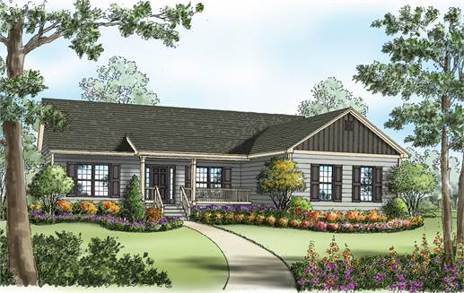 This delightful ranch style home provides 3 bedrooms, 2 baths and standard garage. The master bedroom is split from the other bedrooms by the spacious ‘living center’ of the house. The formal dining room with columns and separate breakfast area will provide multiple places to dine together with friends and family. This plan would be a great addition to any location.