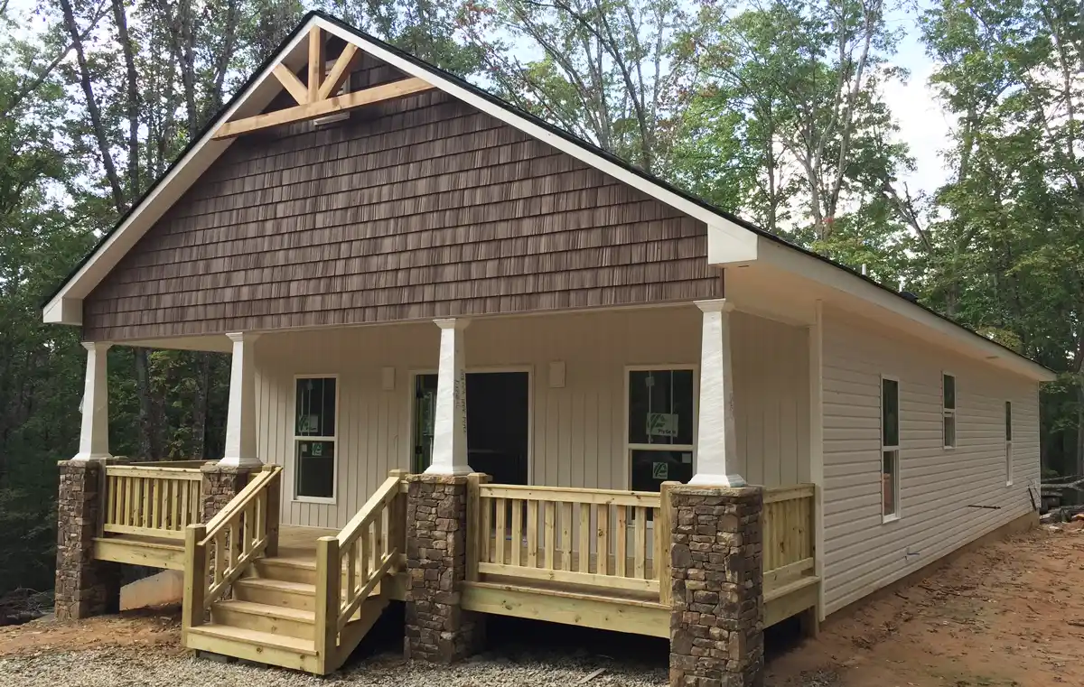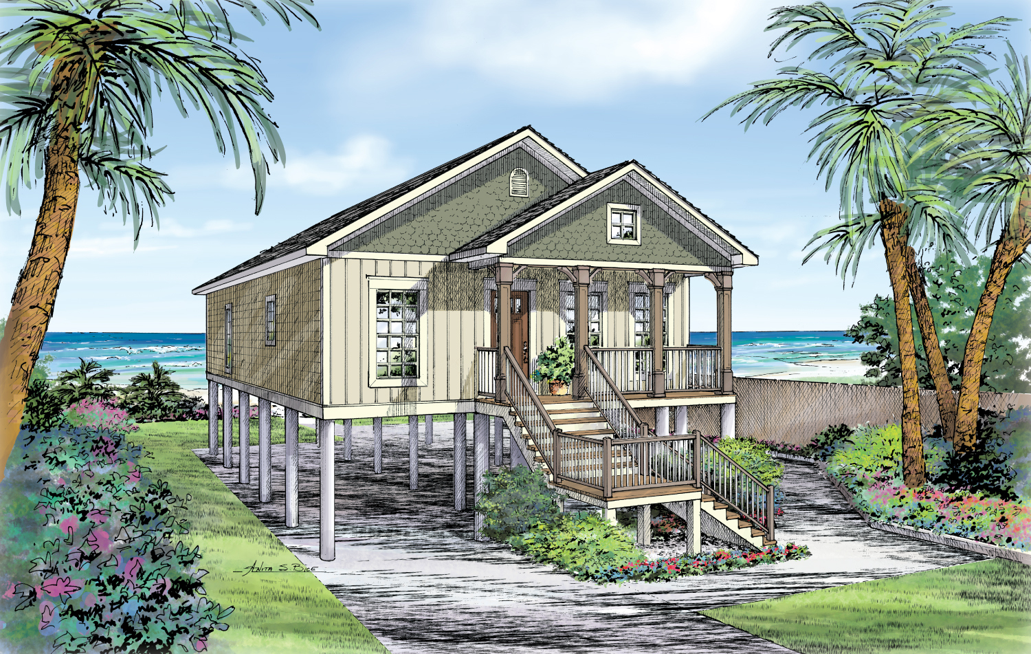 This ranch is a perfect cozy design with a covered porch to the scenery. It offers 3 bedrooms, all with walk-in closets, and 2 full baths. This plan would be perfect on a narrow lot.