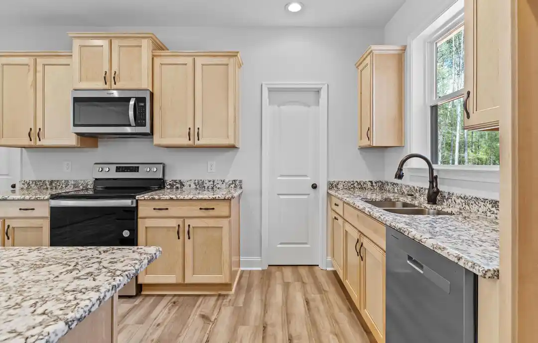 Traditional meets modern farmhouse in this four bedroom ranch style home that would be perfect in any location. The open eating area and kitchen island will provide multiple places to dine together with friends and family. All bedrooms are complete with walk-in closets.